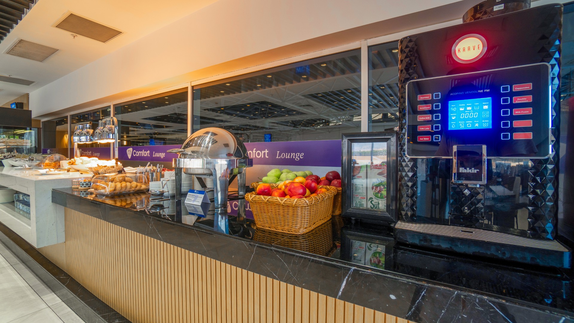 Bright, welcoming, and conveniently located — Comfort Lounge awaits you just a short walk past security, passport control, and the vibrant marketplace area. Enjoy a peaceful break before your flight, complete with its very own duty-free shop inside.